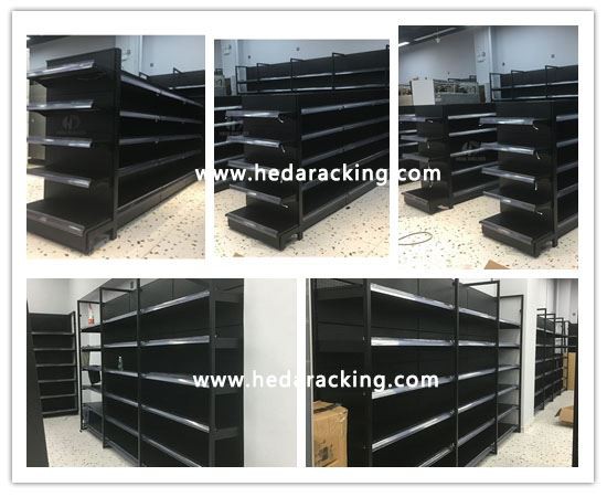 This Black supermarket shelves are made of cold rolled steel, this shelf have double sided, single sided and wall shelf. We have many type of shelves for your choose. Do you like this shelf for your store, shop, super mall or supermarket. Send inquiry for us, we will send our catalog for you, also we can recomend for you.