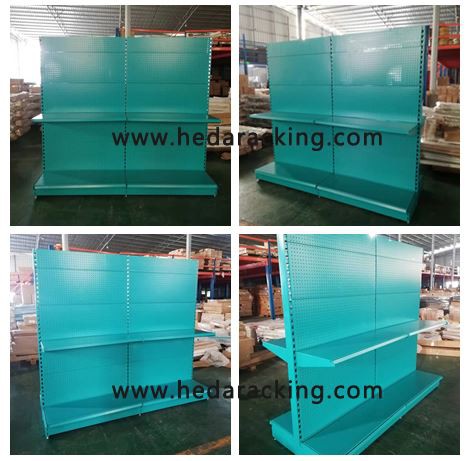 Blue Pegboard Supermarket Shelves.