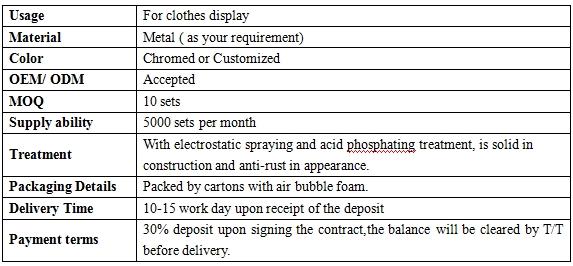 Product name: Clothing display racks Product description: Why would everyone choose us: 1. We have a wide range of product category for you to choose,from related products to fashion design. 2.We have bureau veritas certification and CE Declaration of conformity. 3.We use thick steel and...