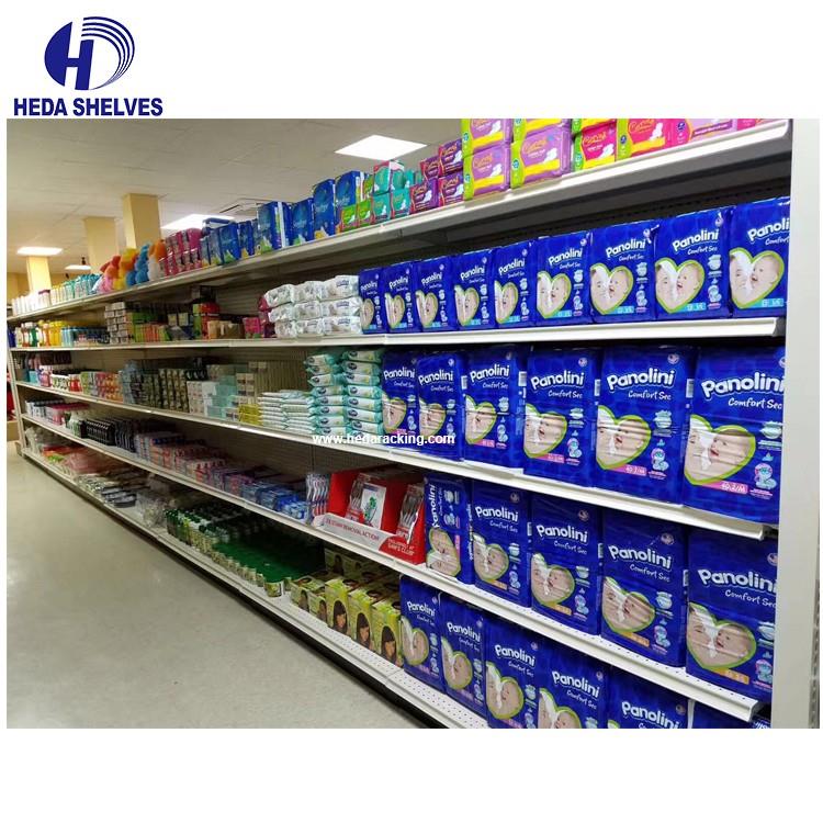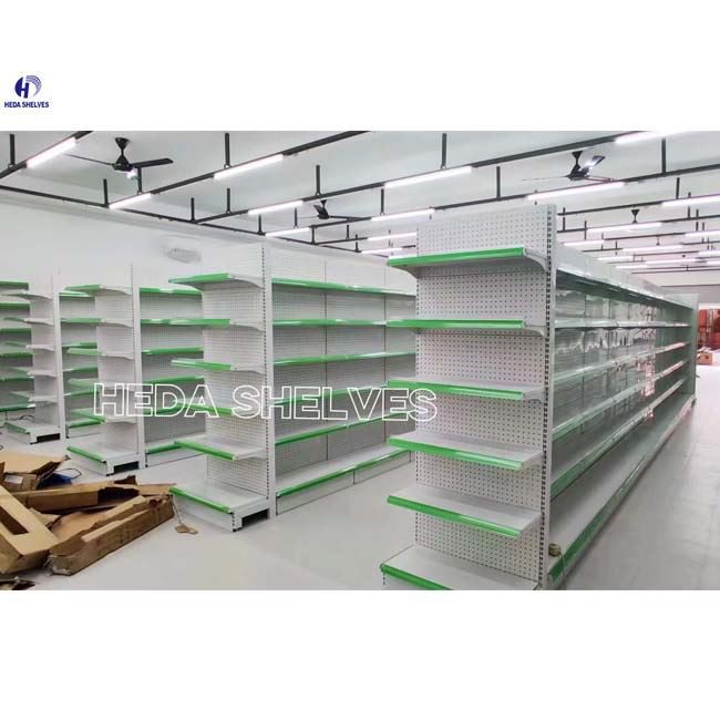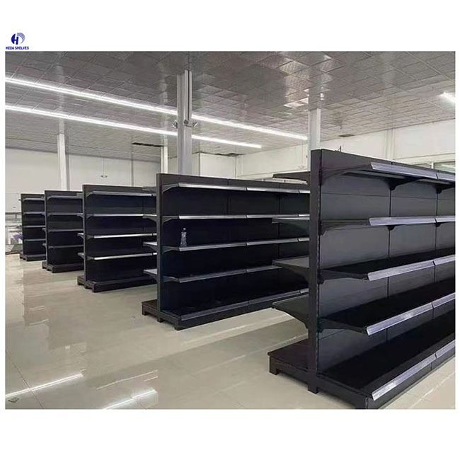 Supermarket Gondola shelving is the most significant piece of shop equipment, not because most products are displayed on the gondola shelves, but because it is used to create the overall store layout by forming the shelving aisles.