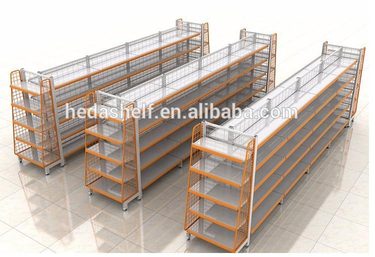 Supermarket Gondola shelving is the most significant piece of shop equipment, not because most products are displayed on the gondola shelves, but because it is used to create the overall store layout by forming the shelving aisles.