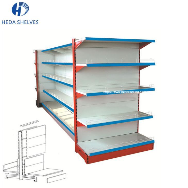 Supermarket Gondola shelving is the most significant piece of shop equipment, not because most products are displayed on the gondola shelves, but because it is used to create the overall store layout by forming the shelving aisles.