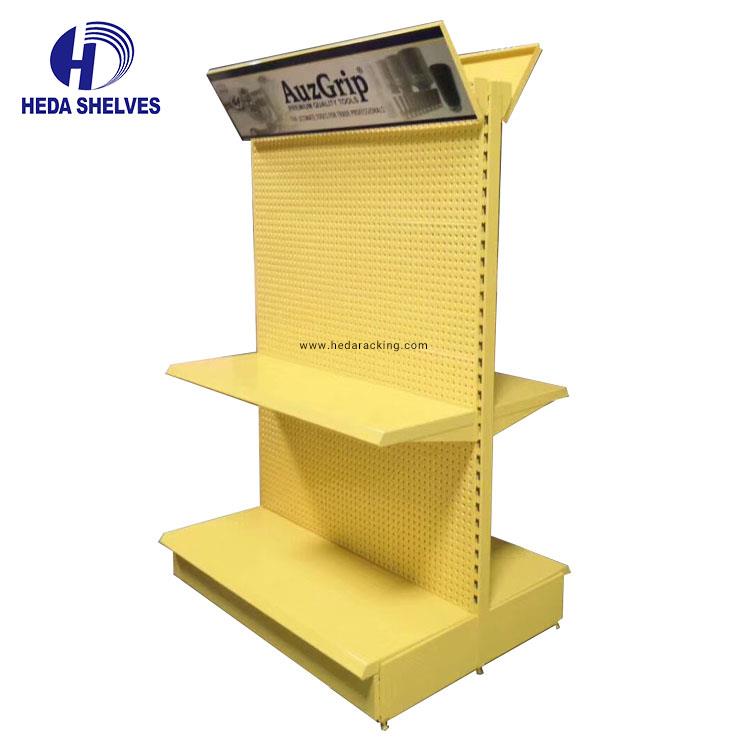 Hardware Tools Display Rack is the most commonly used in retail store, supermarket,convenience store. This type of rack provides flexible stock management to each pallet, allowing you to store multiple items like power tools, garden tools, hand tools with easier picking. The basic components of display rack are the slatwalls and shelf. our display rack shelf can hold 80kg in a layer, support to many kinds of tools or you can custom the higher capacity for your store.