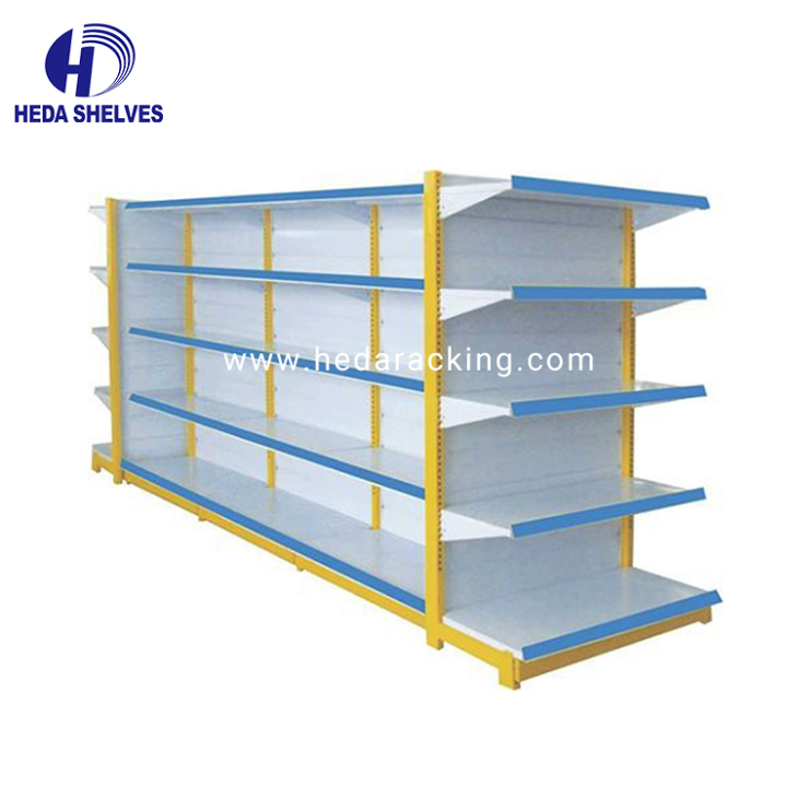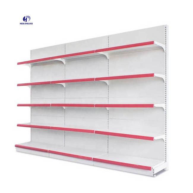 By carton with plastic bubble filmSupermarket shelf display racks,Supermarket Gondola shelving is the most significant piece of shop equipment, not because most products are displayed on the gondola shelves, but because it is used to create the overall store layout by forming the shelving aisles.
