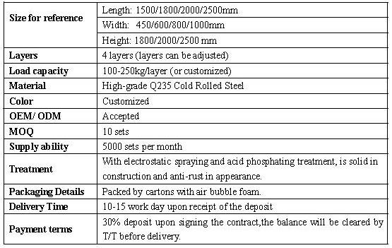Light duty metal shelving Load bearing is about 150kg to 300kg per layer,easy to disassemble and assemble, Competitive price among the racks suppliers.