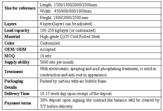 Light duty steel shelving Load bearing is about 150kg to 300kg per layer,easy to disassemble and assemble, Competitive price among the racks suppliers.