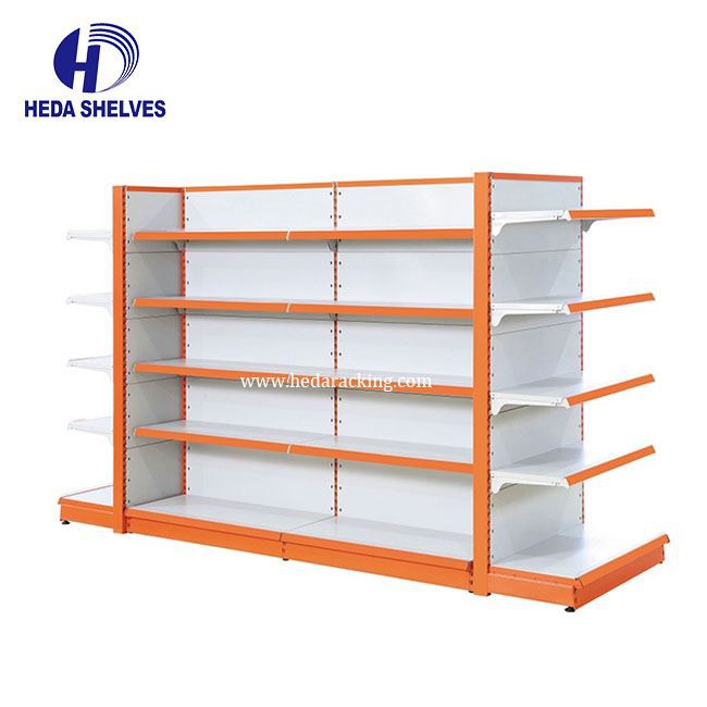 Store Display Shelves Racks Supermarket Gondola Shelving is the most significant piece of shop equipment, not because most products are displayed on the gondola shelves, but because it is used to create the overall store layout by forming the shelving aisles.