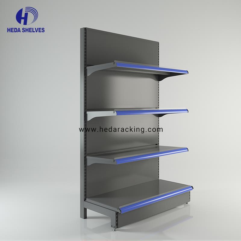 Supermarket Gondola shelving is the most significant piece of shop equipment, not because most products are displayed on the gondola shelves, but because it is used to create the overall store layout by forming the shelving aisles.