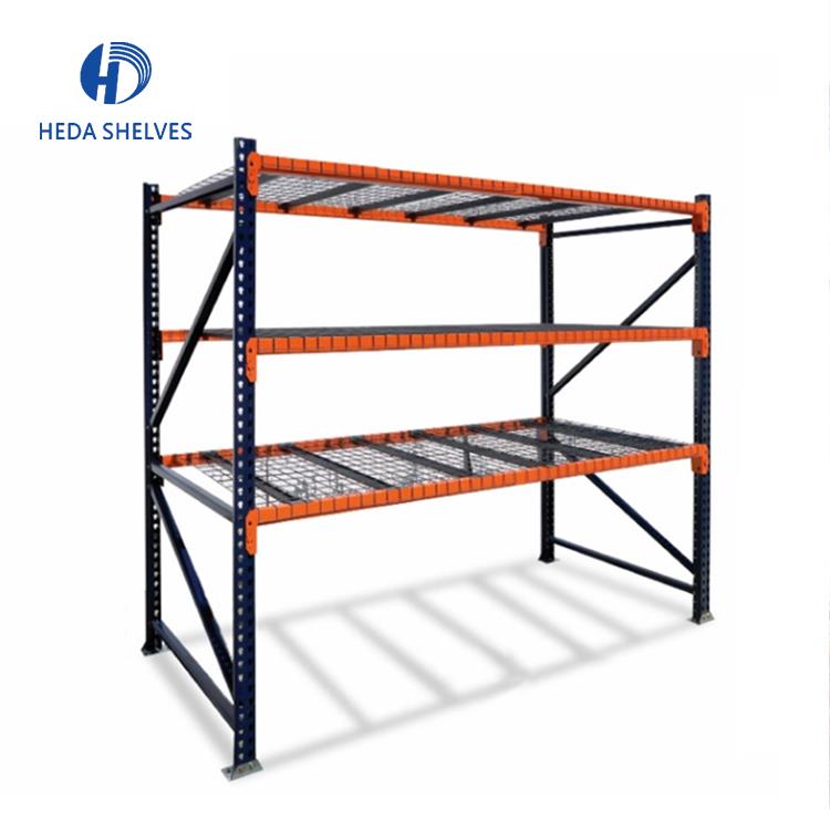 Blue Orange Pallet Shelving Rack is an industrial-grade storage solution that can help businesses to increase their operational efficiency and productivity. It is designed to store and organize heavy loads of palletized goods, making it perfect for warehousing, manufacturing, and distribution facilities.   Length(mm) 1500 1800 2000 2500 Width(mm) 450 600 800 1000 Height(mm) 1800 2000 2500 3000(etc.) Load Capacity : 700kg/layer 500kg/layer 300kg/layer   Upright 80*40*1.8 80*40*1.6 80*40*1.5   Horizontal Beam 80*40*2.0 60*40*1.8 60*40*1.6   Decking(mm) 1.0(thick) 0.7 0.7