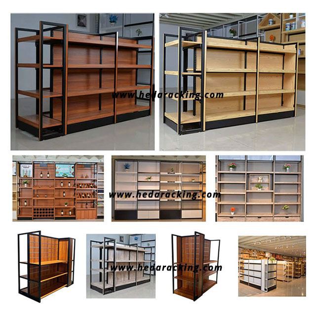 New style metal and wooden display shelf, looks very elegant and high level, which suits Maternity Store, stationery store, cosmetic store, clothes store and convenience store,wine store, and so on.