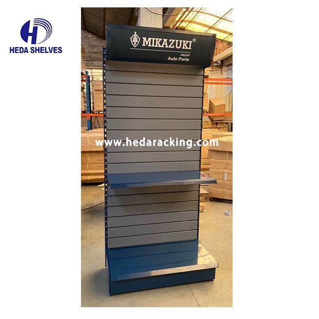 Blue Slat board display stand is very practical and popular, it can be used to place goods.This display stand can be hung with hooks and the size can be customized. Colors are also optional.It is widely used in supermarkets, hardware stores, clothing stores, bag stores, department stores.