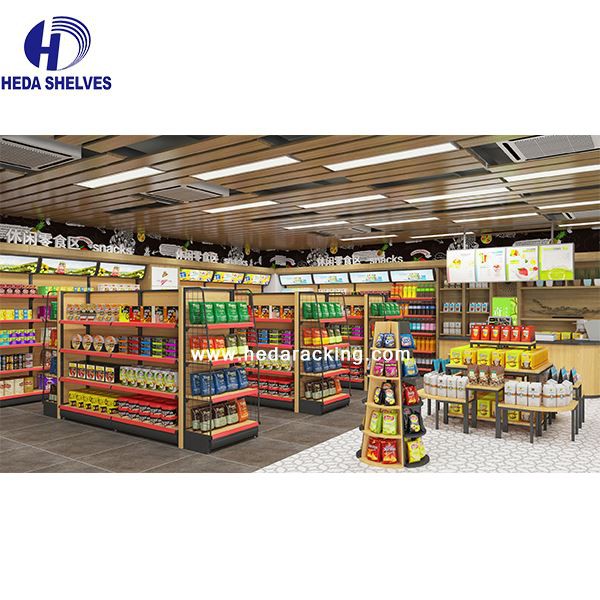 supermarket display rack design is the most significant piece of shop equipment, not because most products are displayed on the gondola shelves, but because it is used to create the overall store layout by forming the shelving aisles.