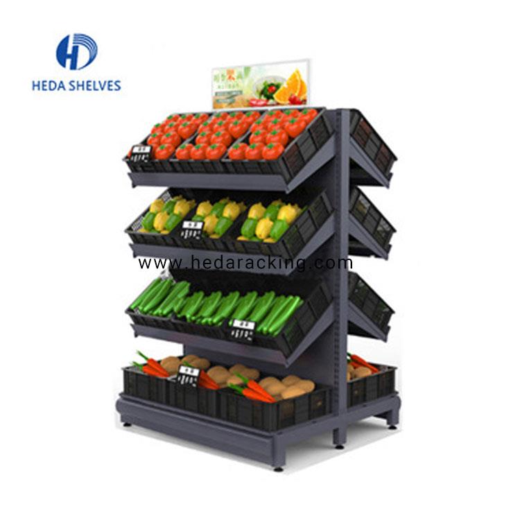 Product name: Fruit Display Rack Product description: Features: 1.With suitable slope angle, water can flow down the saver so as to keep the fruit and vegetable more fresh. 2.This kind of rack, with long life-span, is the most popular style in foreign markets. 3.High security and quality....