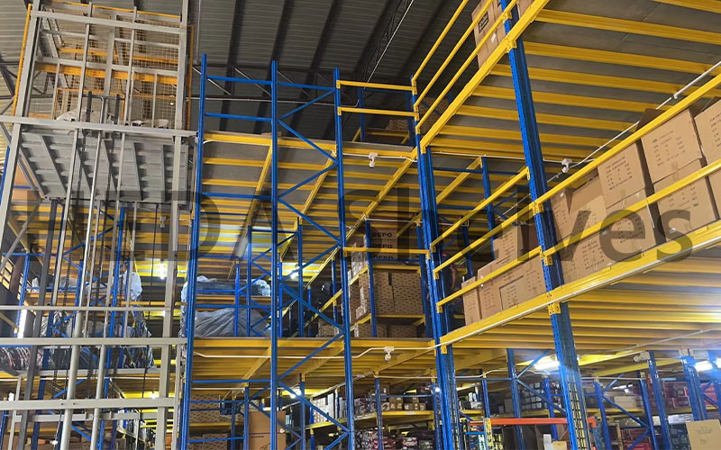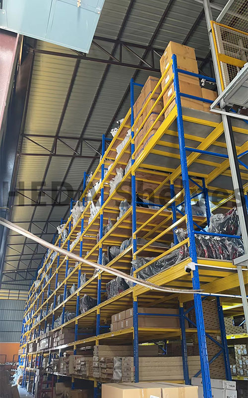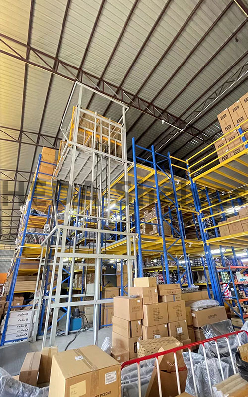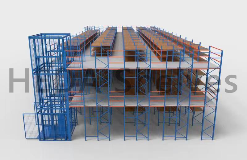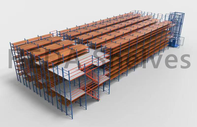 This is our latest customer case: A customer from Thailand came to us and wanted to customize steel racking for storing auto repair parts for his warehouse. Due to the different sizes and types of stored goods, we recommended our mezzanine racking to our customers, equipped with a freight elevator and two staircases. The following is a 3D drawing we drew for our customers for free.