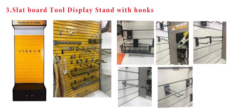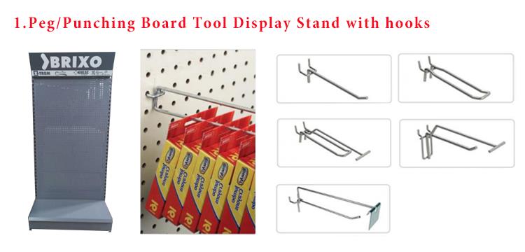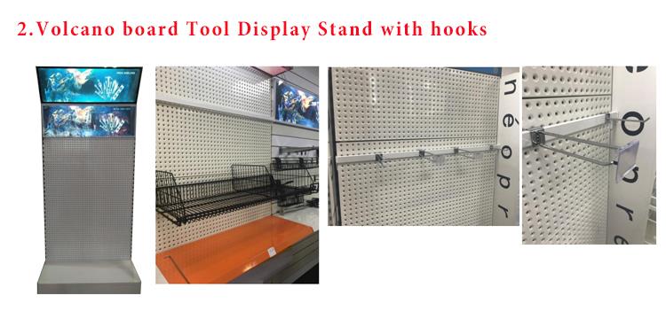 Tool Display Stand can be used with hook,light box (with light or without light), layer board, advertising board,bottom ark etc.We will introduce these three type Tool Display Stands to you, which type you like, pls feel free to contact us.We also can supply you all kinds of rack and shelf , such as warehouse rack,supermarket shelf and so on! 1. Peg/Punching board Tool Display Stand 2. Volcano board Tool Display Stand 3. Slat board Tool Display Stand