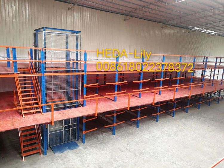This is a combination of Cantilever rack and Mezzanine floor with lifting platform.